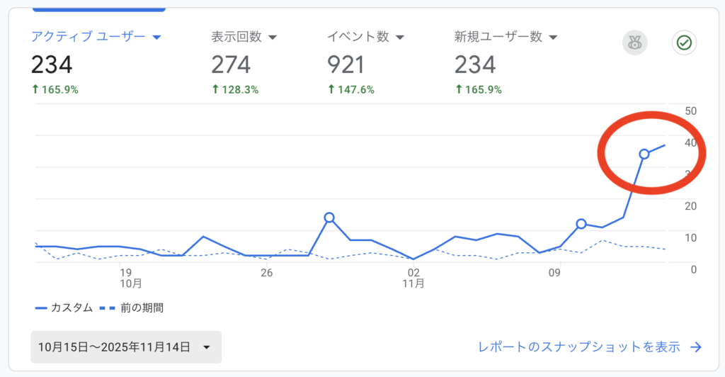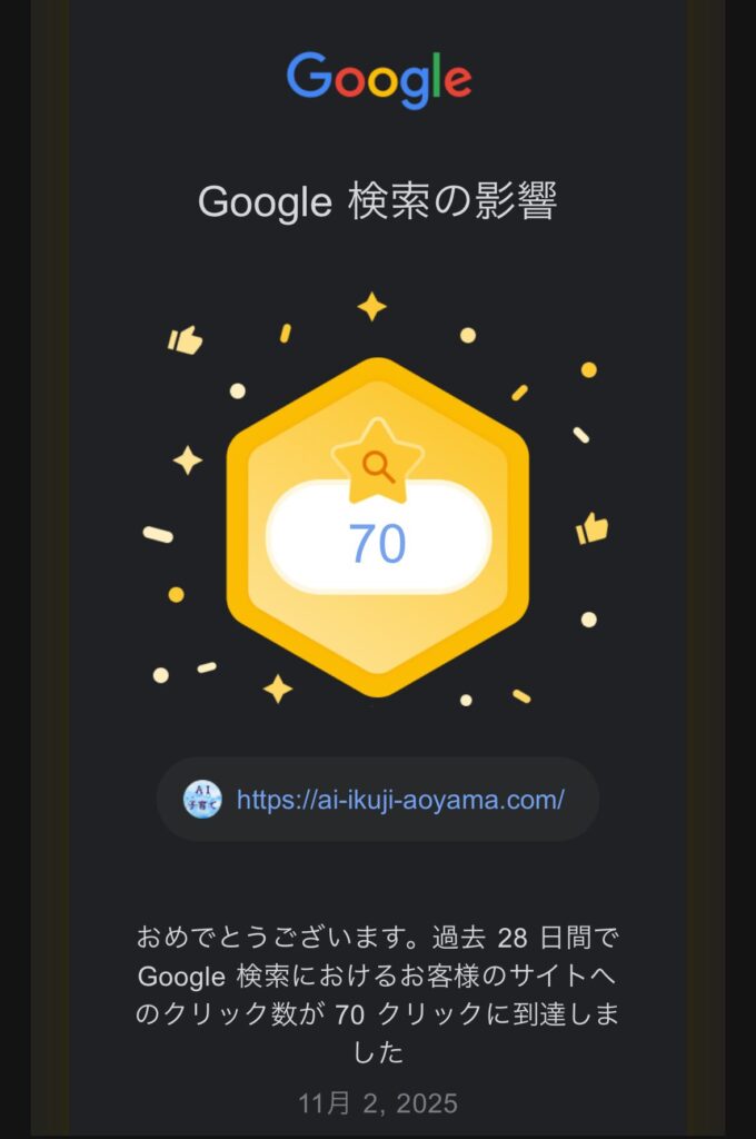 サーチコンソールで確認できる「検索流入・クリック数」に大きな変化がありました、