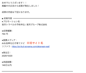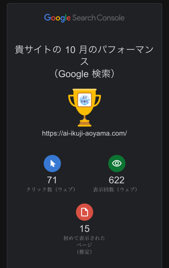 アクセスが伸びてくると、「○月のパフォーマンス」という通知が届くとは知りませんでした。